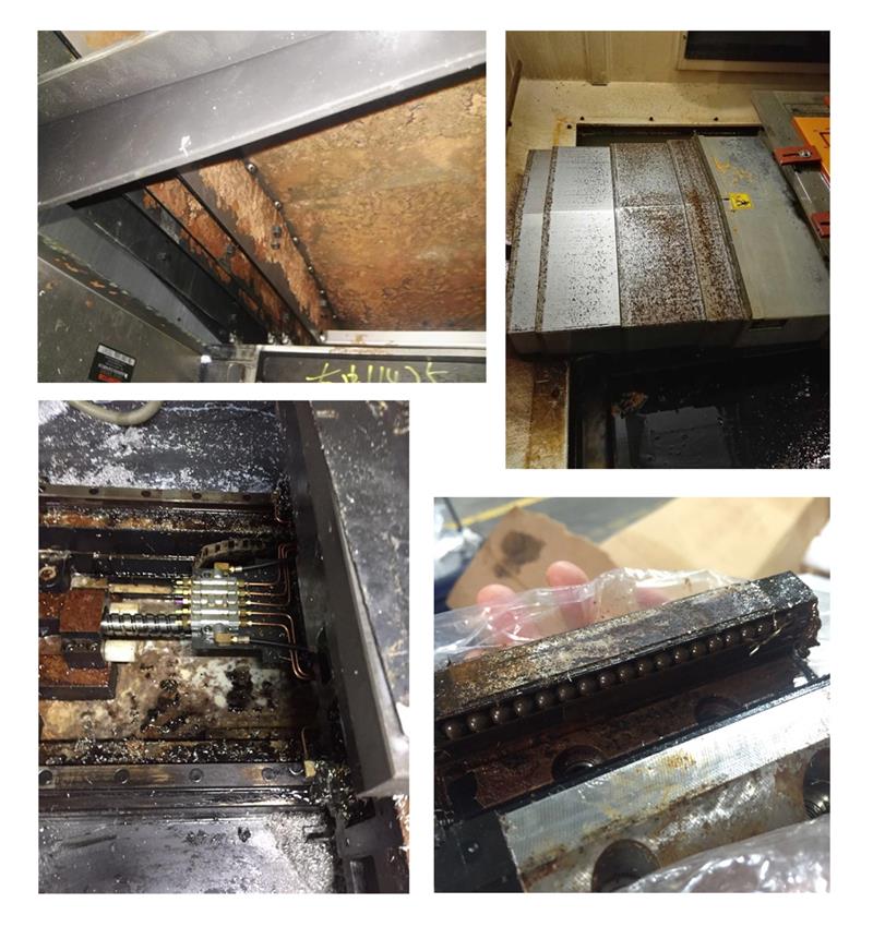 客戶在不規(guī)范使用切削油時,造成機床部件生銹。