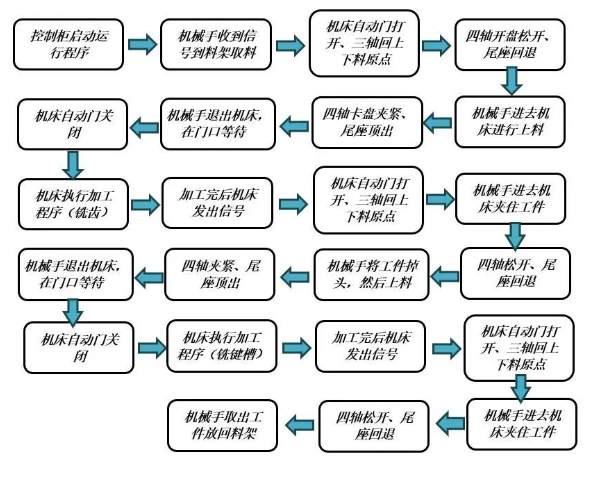 自動化產(chǎn)線的上下料過程非常簡單且高效。工人只需將毛坯放在料架上,啟動產(chǎn)線自動程序后,六關(guān)節(jié)機械手便會自動抓取毛坯并將其送入加工中心進(jìn)行加工。加工完成后,機械手再將成品取出并放置在指定位置。整個過程無需人工干預(yù),既節(jié)省了時間又提高了安全性。
