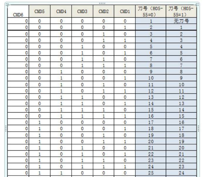 注:由于該款驅(qū)動器CMD DI 組合(CMD1-CMD1均為0)即輸入0時為1號刀,而且系統(tǒng)默認(rèn)輸入1時為1號刀,因此使用SUB37(二進(jìn)制減法)功能模塊進(jìn)行刀號賦值傳輸。