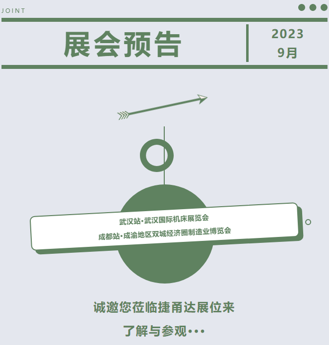 歡迎您到捷甬達展位來了解與參觀!JM2023第26屆濟南國際機床展覽會;CWIEME2023西部制博會;CCiME2023...