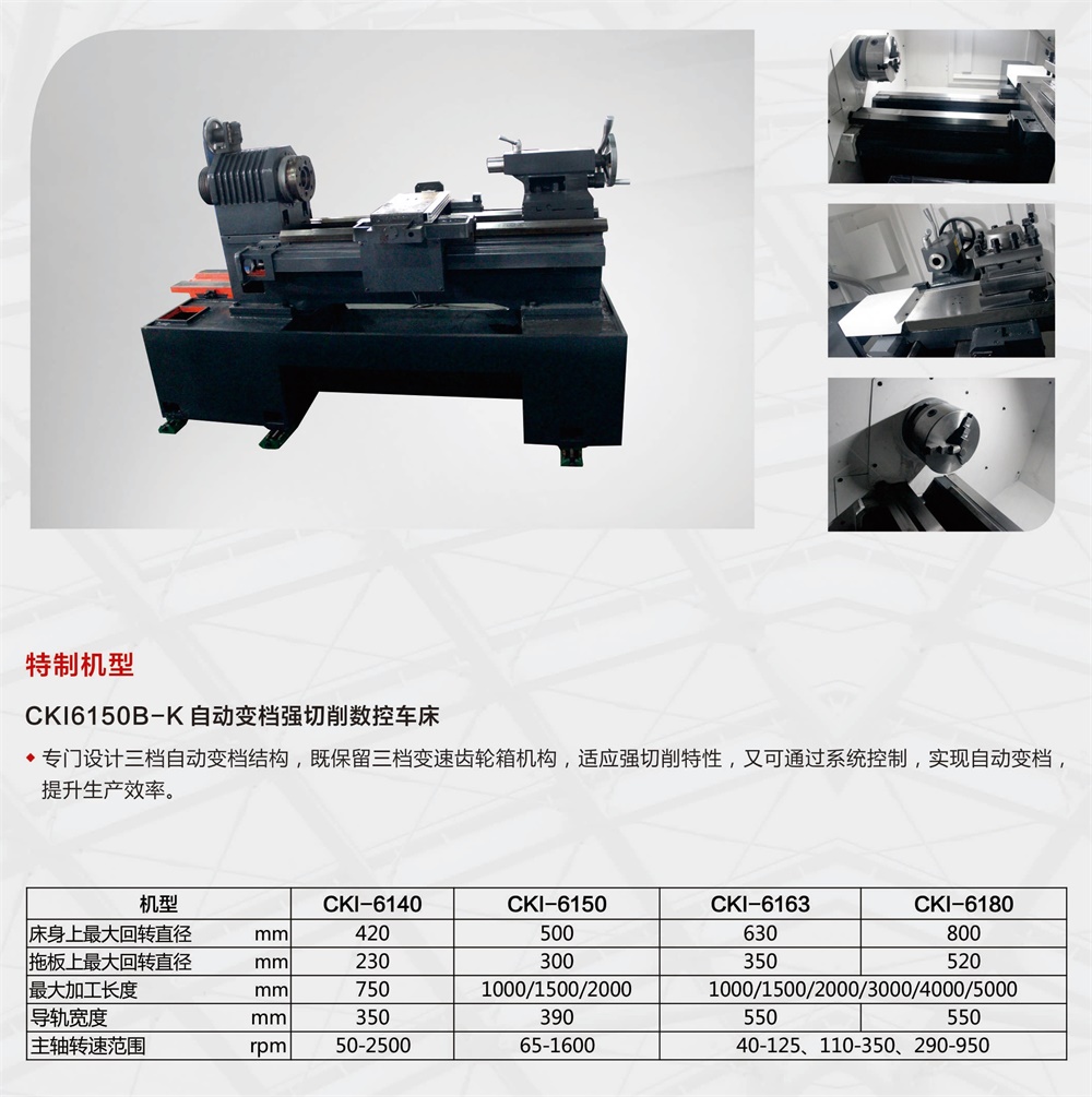 數(shù)控車(chē)床是市場(chǎng)上常見(jiàn)的普通車(chē)床的升級(jí)換代產(chǎn)品,對(duì)比普通數(shù)控車(chē)床,具有操作方便、加工質(zhì)量穩(wěn)定、加工工件光潔度高、全防護(hù)、切削液循環(huán)使用、環(huán)保性能好等特點(diǎn)。該類數(shù)控車(chē)床適用于加工軸類零件,螺紋、圓弧、圓錐及回轉(zhuǎn)體的內(nèi)、外曲面。6150及以上配置三檔變速箱,可以實(shí)現(xiàn)強(qiáng)力切削,滿足大切削量的加工要求。